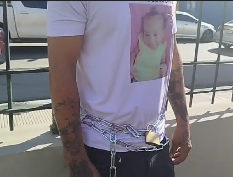 Un hombre se encadenó este miércoles frente a la sede de la Procuraduría General de la República como forma de protesta por la muerte de su hija en un albergue en Santiago, hace casi cuatro meses.